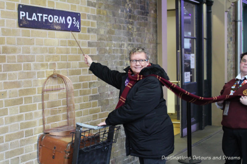 Сам вокзал расположен в районе Камден на северо-востоке Лондона. В фильме показан проход между арками 4 и 5 платформ, но знаменитая тележка установлена там, где и должна быть — между 9 и 10. Найти ее легко — просто идите пока не увидите толпу. А для полноты впечатлений стоит забронировать Warner Bros Studio Tour в Лондоне.